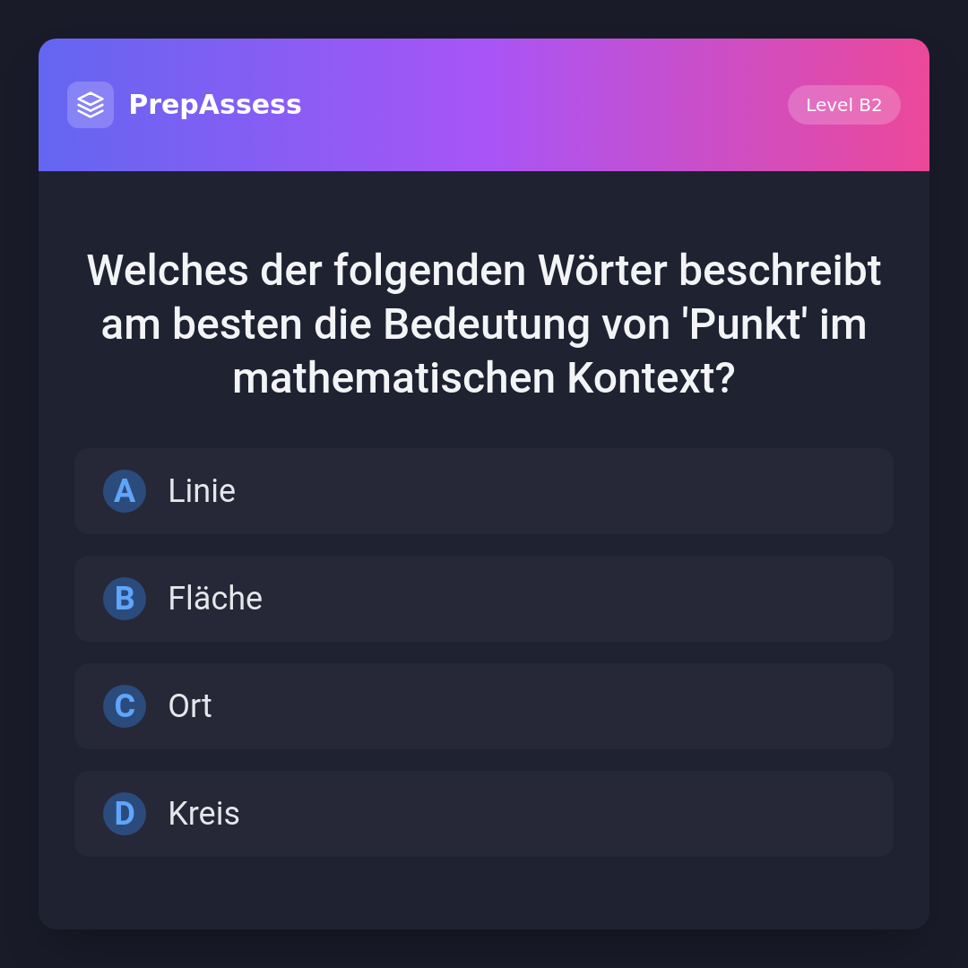 Welches der folgenden Wörter beschreibt am besten die Bedeutung von 'Punkt' im mathematischen Kontext?