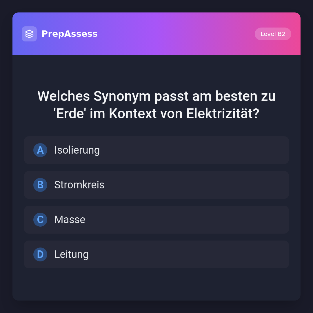 Welches Synonym passt am besten zu 'Erde' im Kontext von Elektrizität?