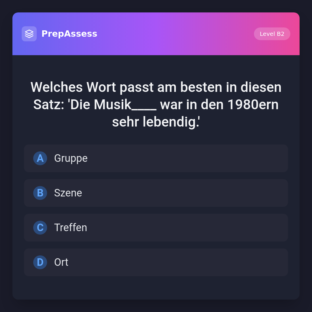 Welches Wort passt am besten in diesen Satz: 'Die Musik____ war in den 1980ern sehr lebendig.'