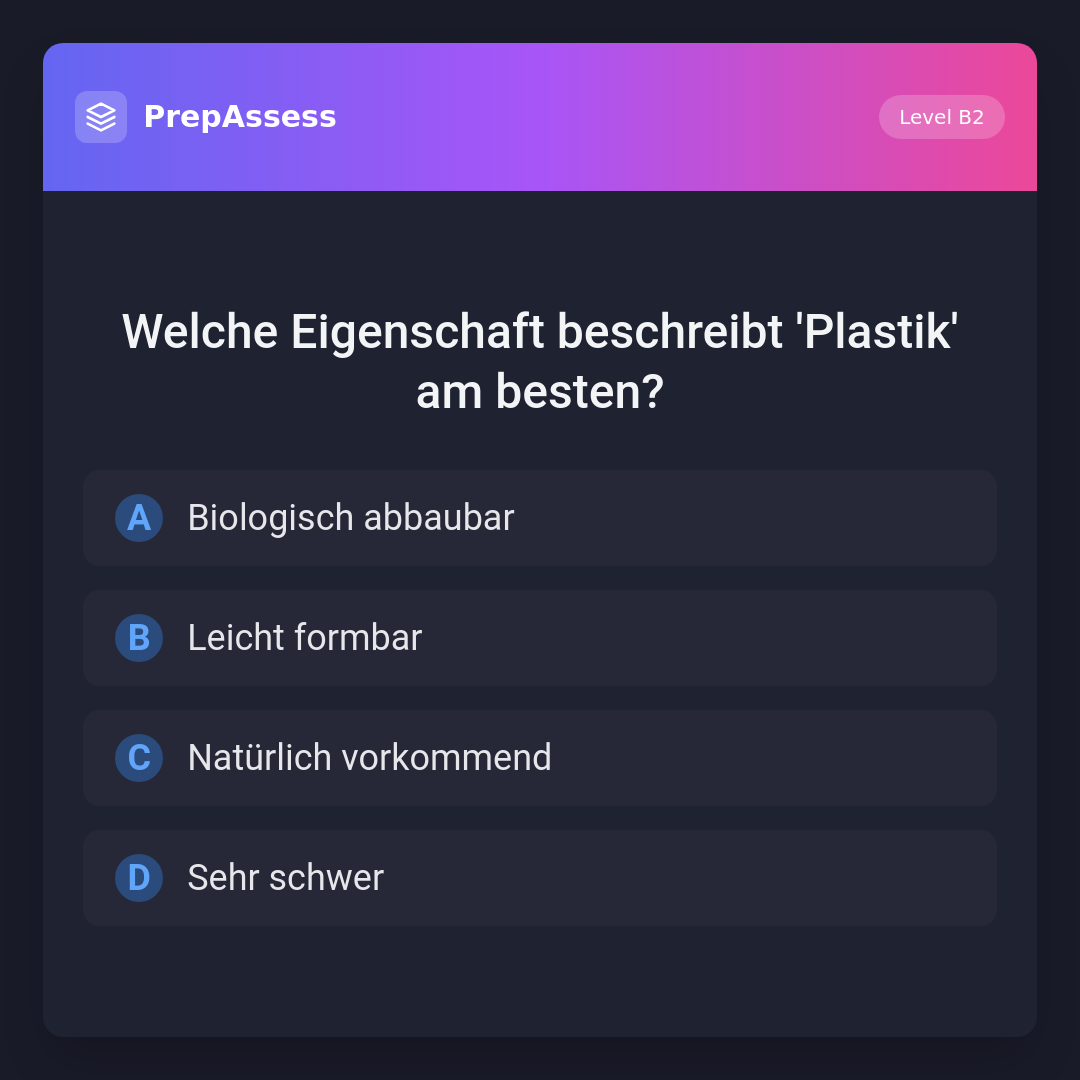 Welche Eigenschaft beschreibt 'Plastik' am besten?