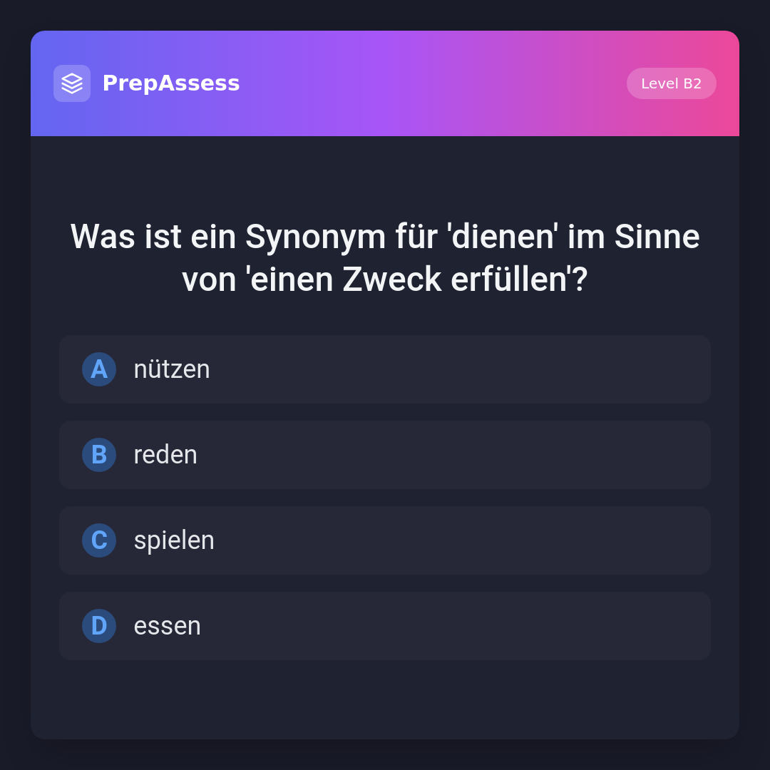 Was ist ein Synonym für 'dienen' im Sinne von 'einen Zweck erfüllen'?
