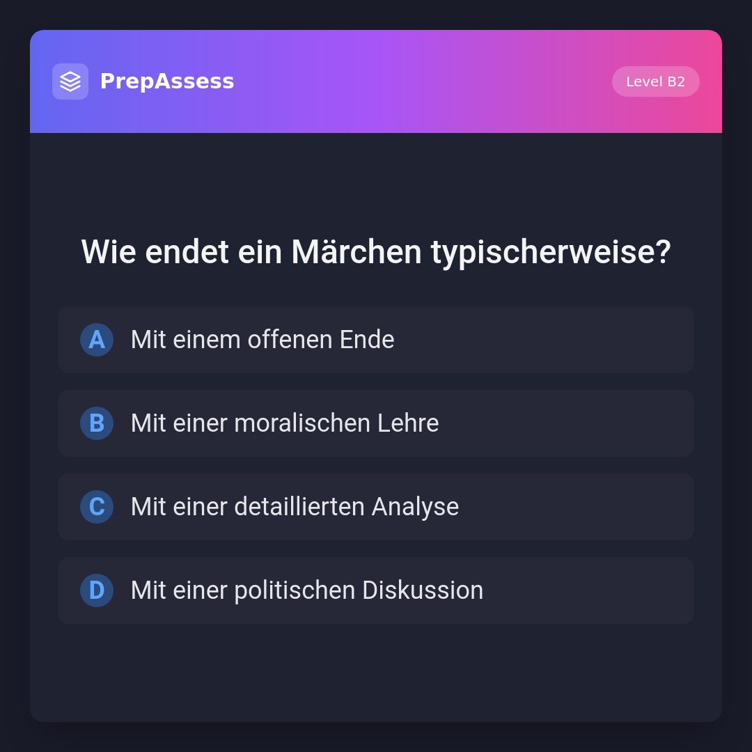 Märchen enden oft mit einer moralischen Lehre oder einem glücklichen Ende. Ein offenes Ende, eine detaillierte Analyse oder eine politische Diskussion sind untypisch für Märchen.