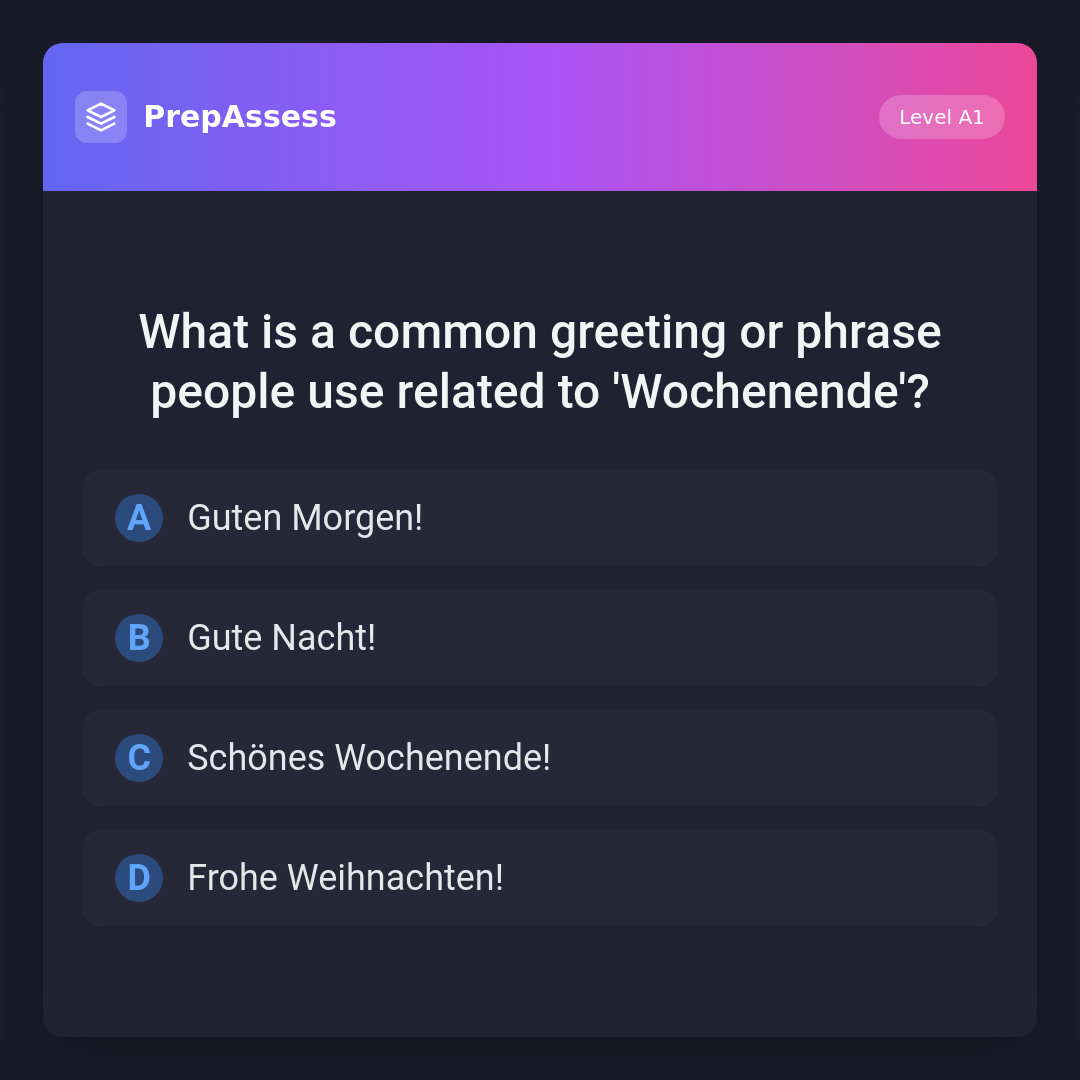 What is a common greeting or phrase people use related to 'Wochenende'?