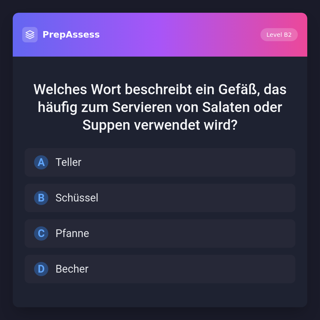 Welches Wort beschreibt ein Gefäß, das häufig zum Servieren von Salaten oder Suppen verwendet wird?