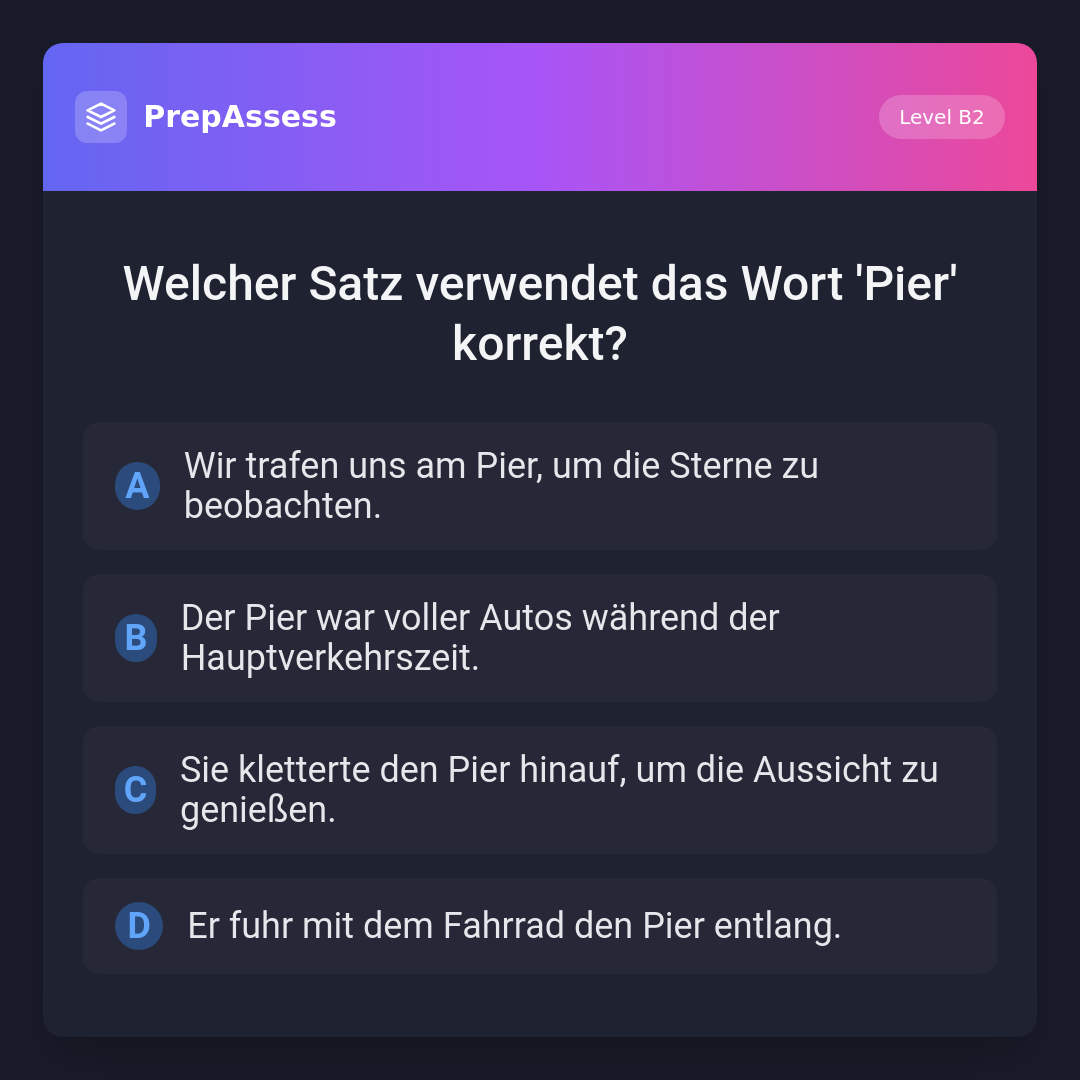 Welcher Satz verwendet das Wort 'Pier' korrekt?