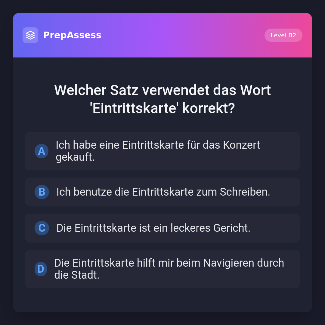 Welcher Satz verwendet das Wort 'Eintrittskarte' korrekt?