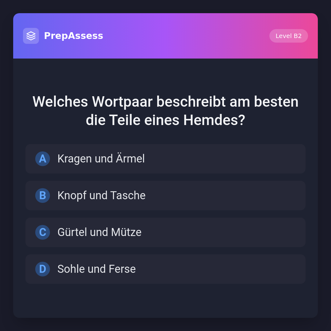 Welches Wortpaar beschreibt am besten die Teile eines Hemdes?