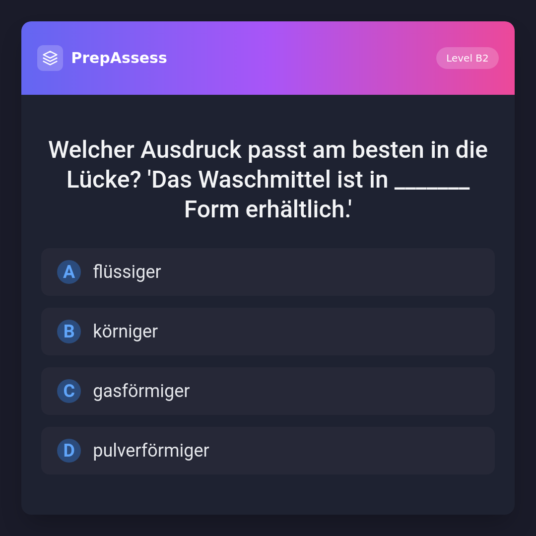 Welcher Ausdruck passt am besten in die Lücke? 'Das Waschmittel ist in _______ Form erhältlich.'