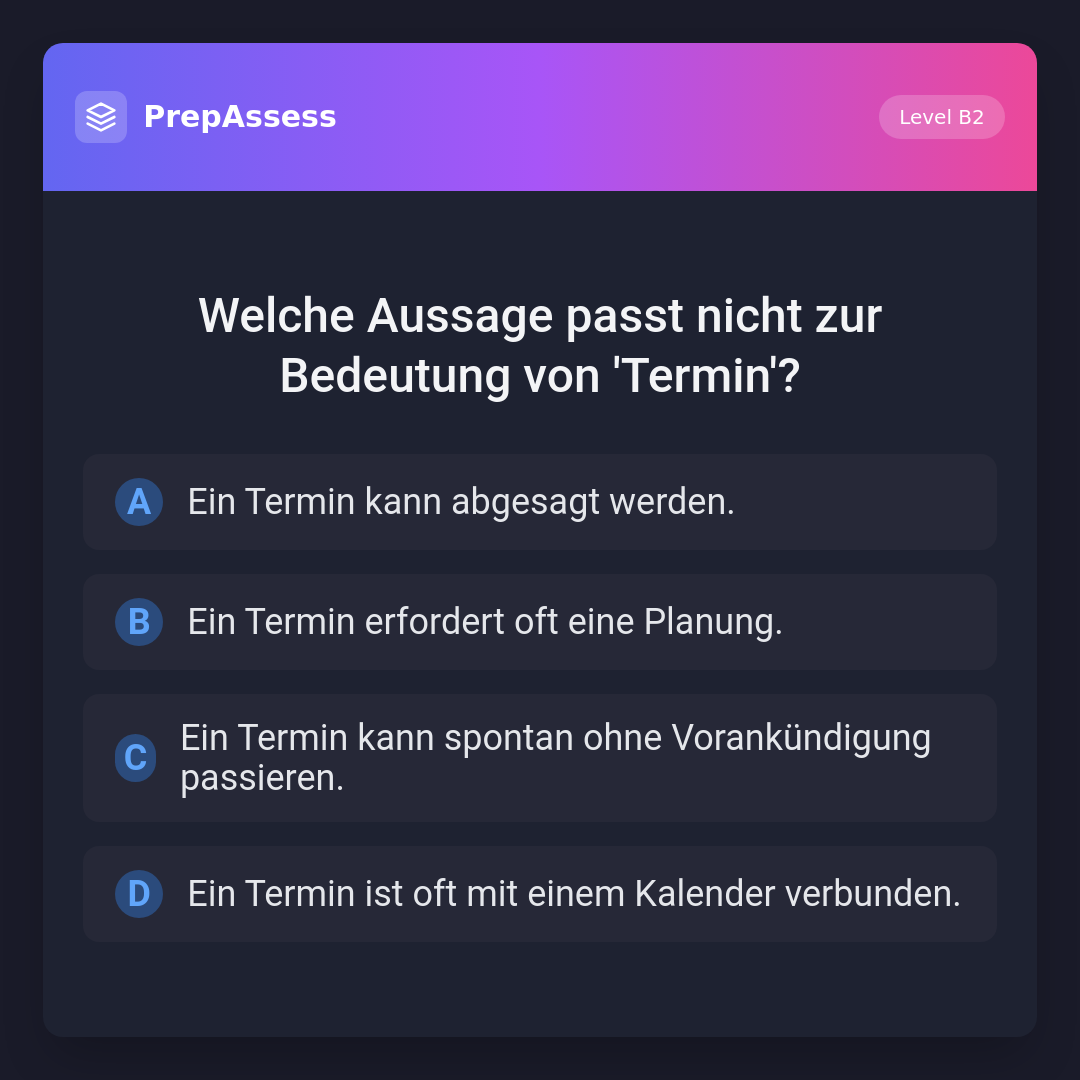 Welche Aussage passt nicht zur Bedeutung von 'Termin'?