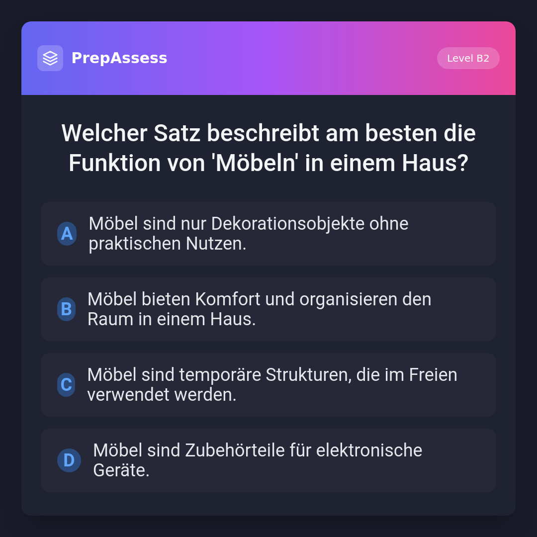 Welcher Satz beschreibt am besten die Funktion von 'Möbeln' in einem Haus?