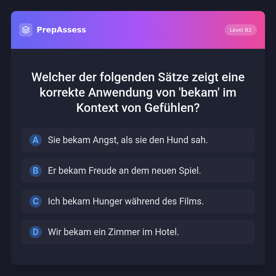 Welcher der folgenden Sätze zeigt eine korrekte Anwendung von 'bekam' im Kontext von Gefühlen?