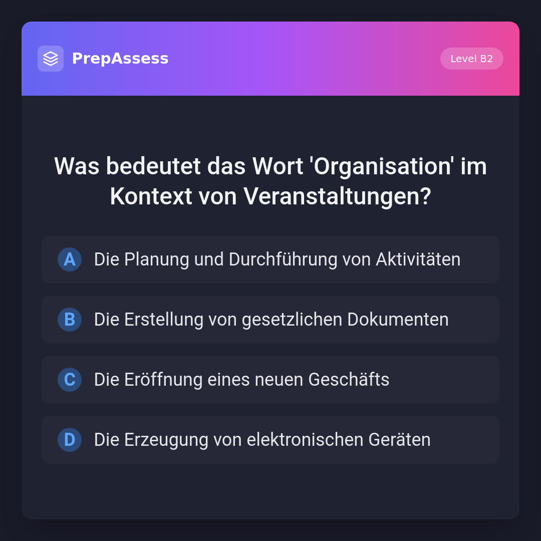 Was bedeutet das Wort 'Organisation' im Kontext von Veranstaltungen?