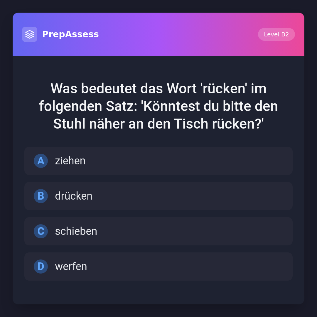 Was bedeutet das Wort 'rücken' im folgenden Satz: 'Könntest du bitte den Stuhl näher an den Tisch rücken?'