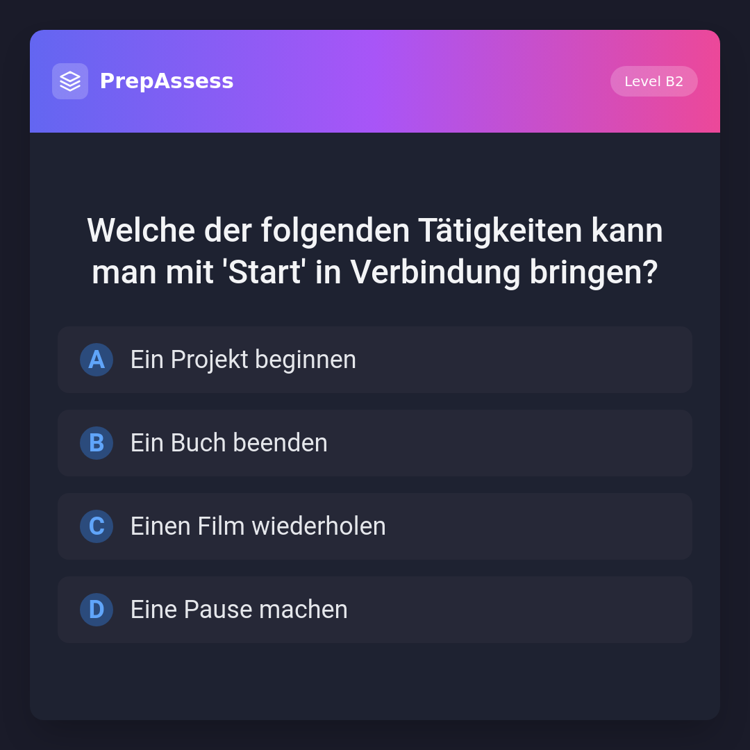 Welche der folgenden Tätigkeiten kann man mit 'Start' in Verbindung bringen?