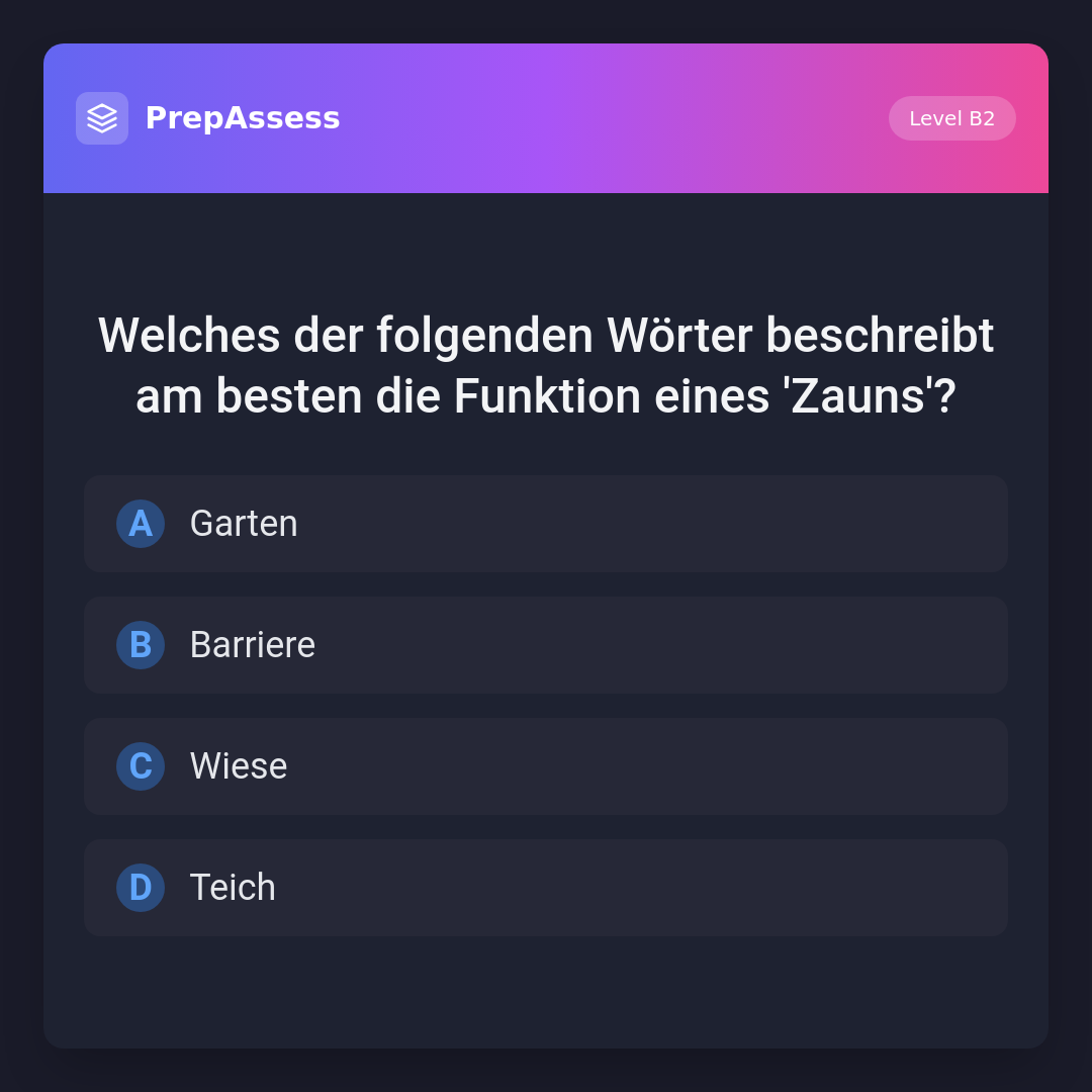 Welches der folgenden Wörter beschreibt am besten die Funktion eines 'Zauns'?