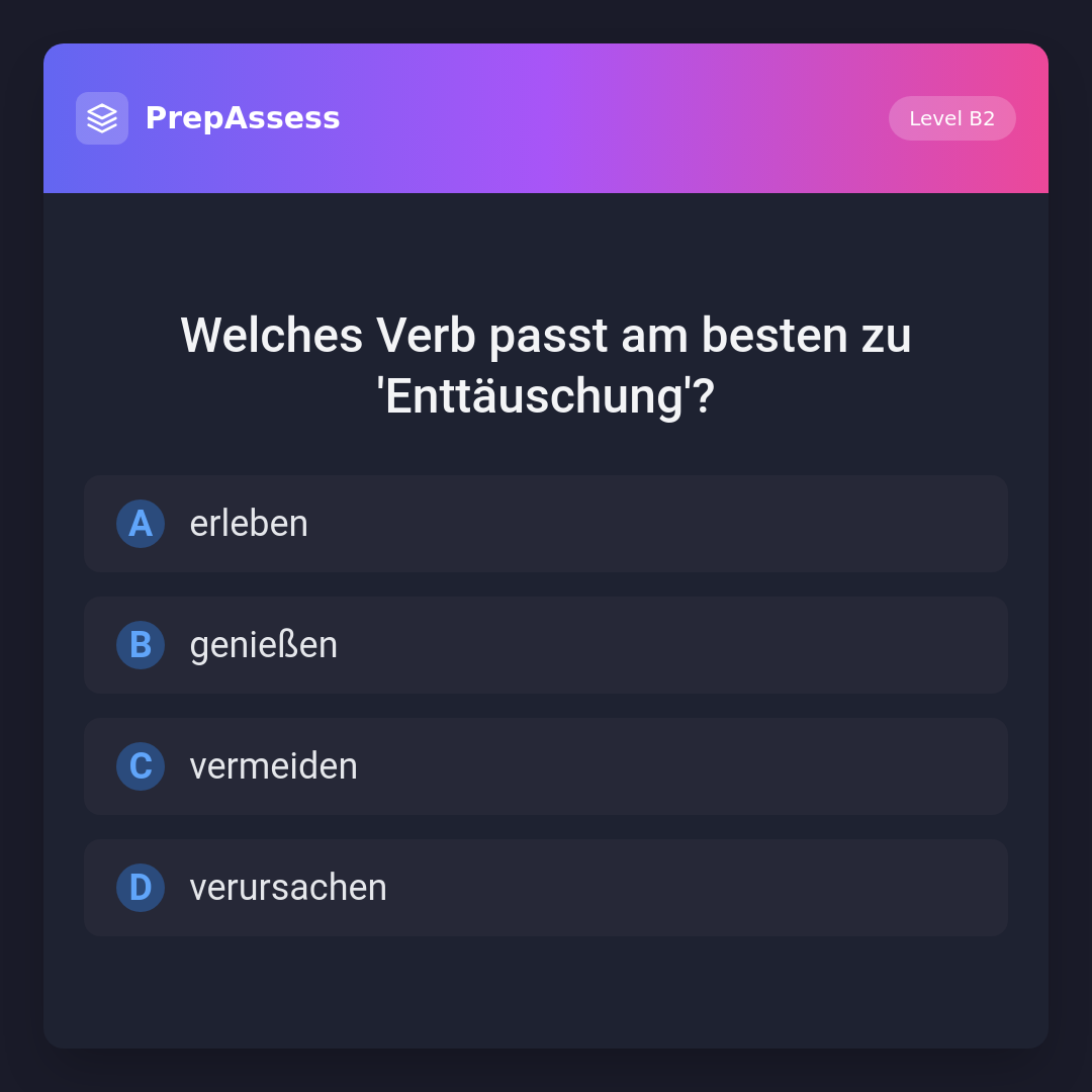 Welches Verb passt am besten zu 'Enttäuschung'?