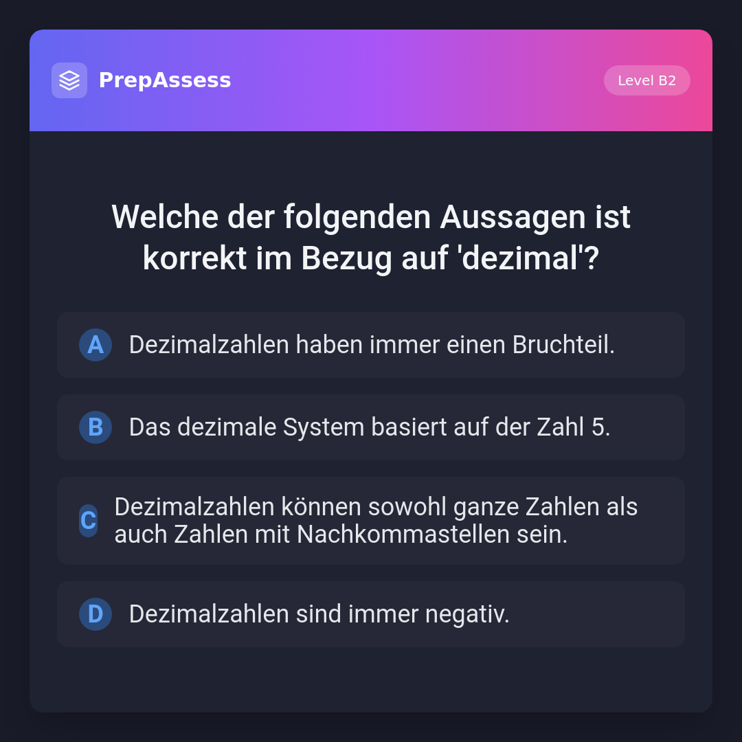 Welche der folgenden Aussagen ist korrekt im Bezug auf 'dezimal'?