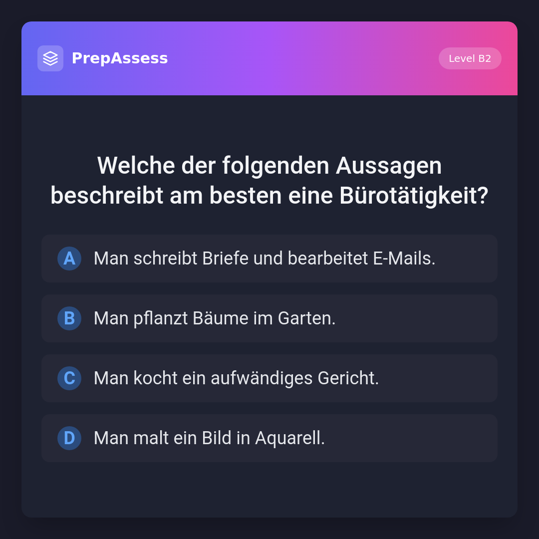 Welche der folgenden Aussagen beschreibt am besten eine Bürotätigkeit?