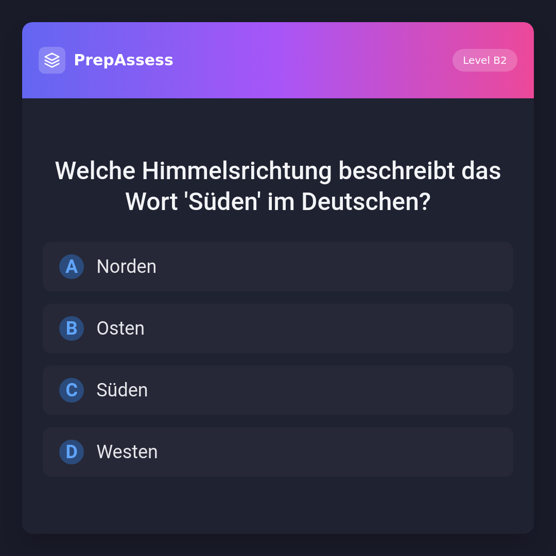 Welche Himmelsrichtung beschreibt das Wort 'Süden' im Deutschen?