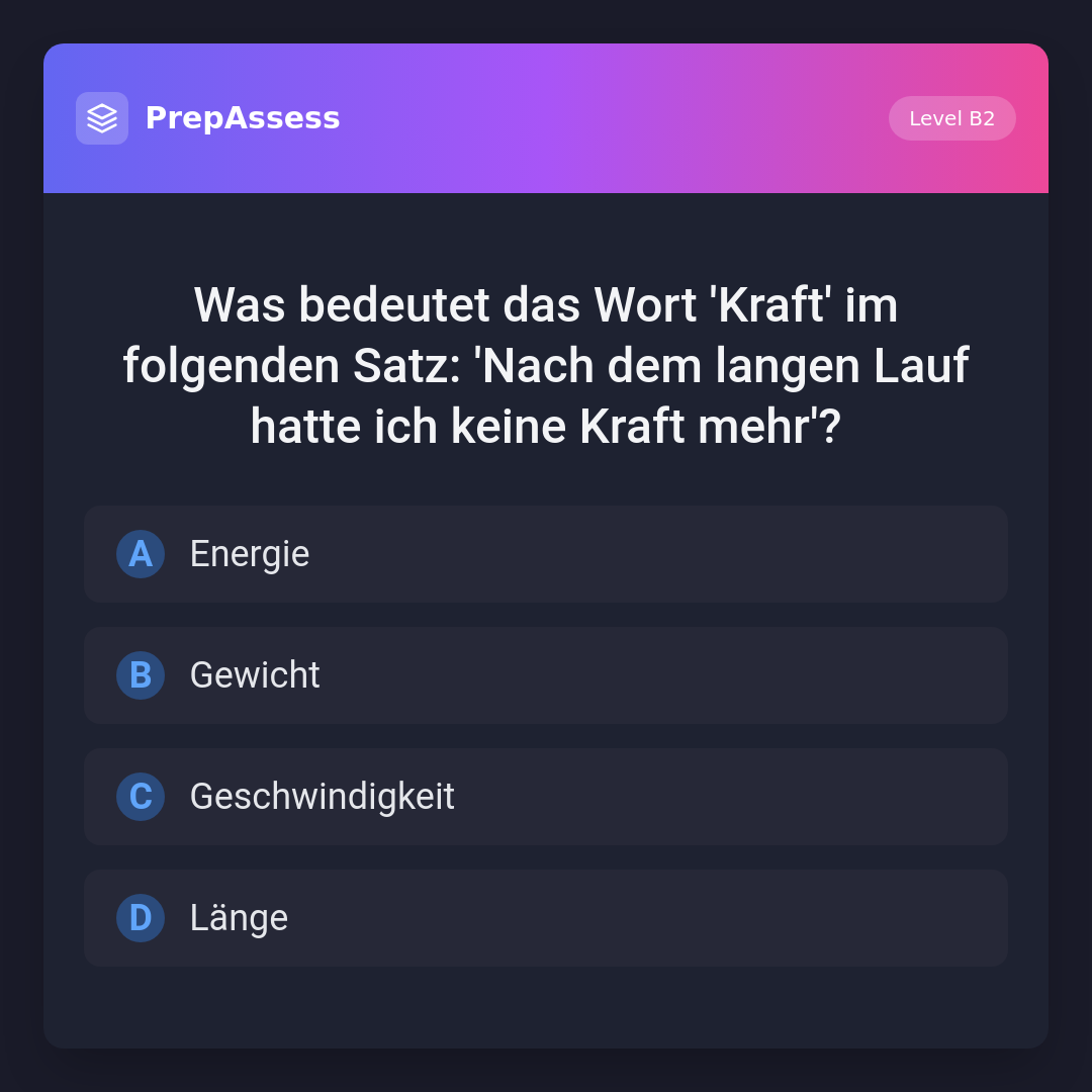 Was bedeutet das Wort 'Kraft' im folgenden Satz: 'Nach dem langen Lauf hatte ich keine Kraft mehr'?