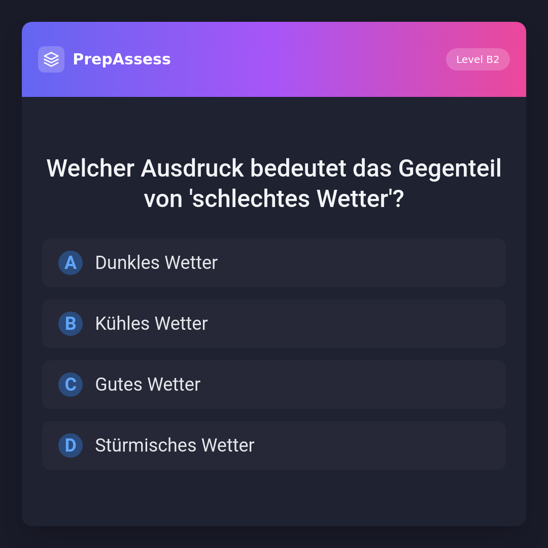 Welcher Ausdruck bedeutet das Gegenteil von 'schlechtes Wetter'?