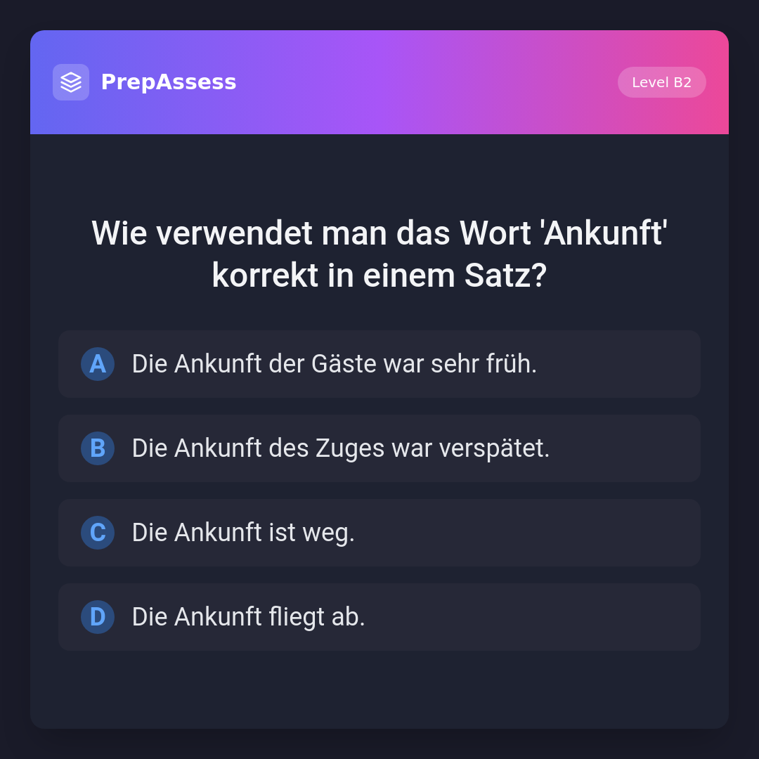 Wie verwendet man das Wort 'Ankunft' korrekt in einem Satz?