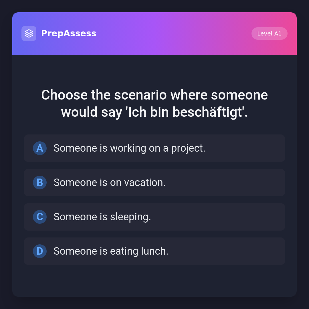 Choose the scenario where someone would say 'Ich bin beschäftigt'.
