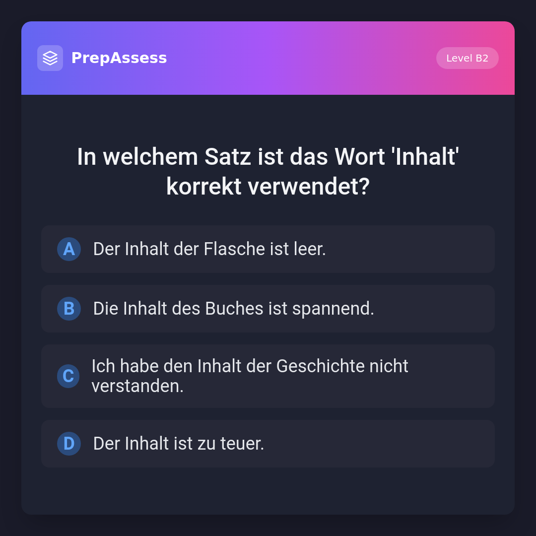 In welchem Satz ist das Wort 'Inhalt' korrekt verwendet?