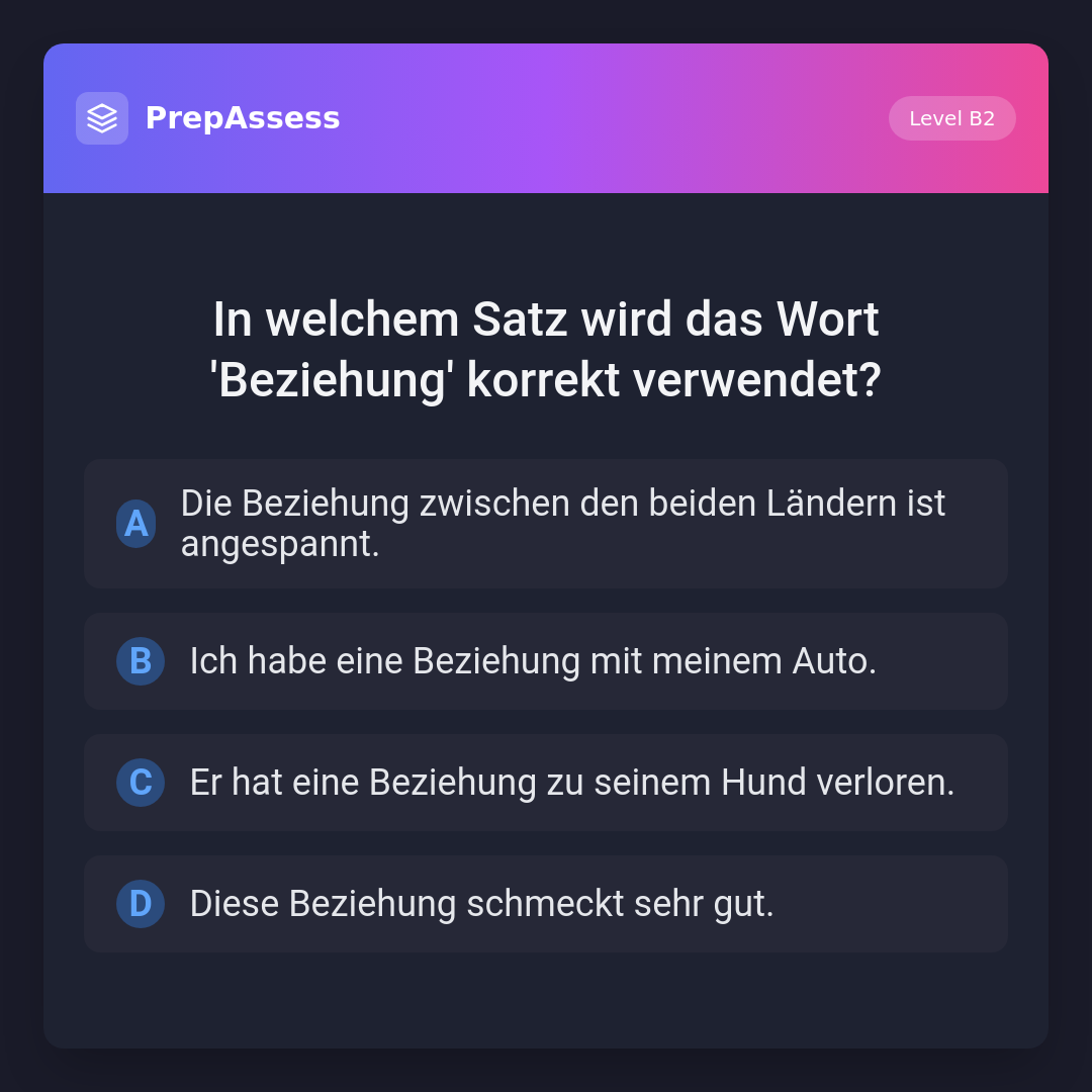 In welchem Satz wird das Wort 'Beziehung' korrekt verwendet?