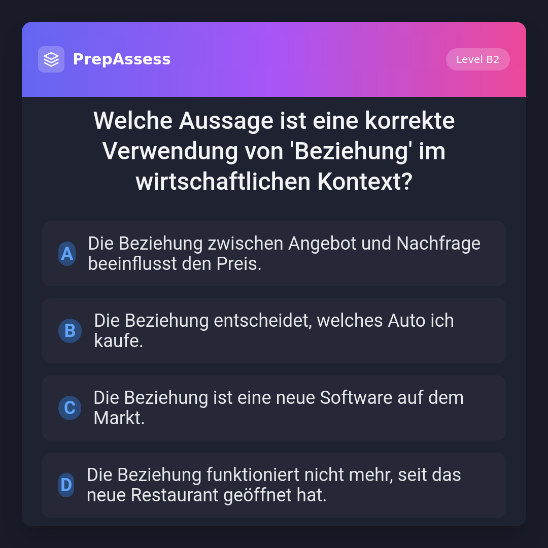 Welche Aussage ist eine korrekte Verwendung von 'Beziehung' im wirtschaftlichen Kontext?
