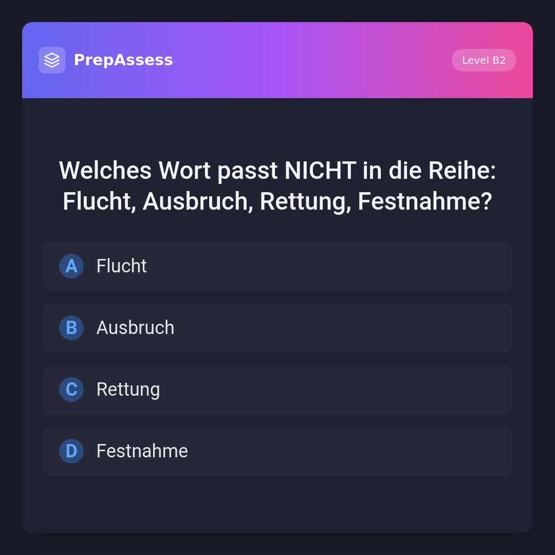 Welches Wort passt NICHT in die Reihe: Flucht, Ausbruch, Rettung, Festnahme?