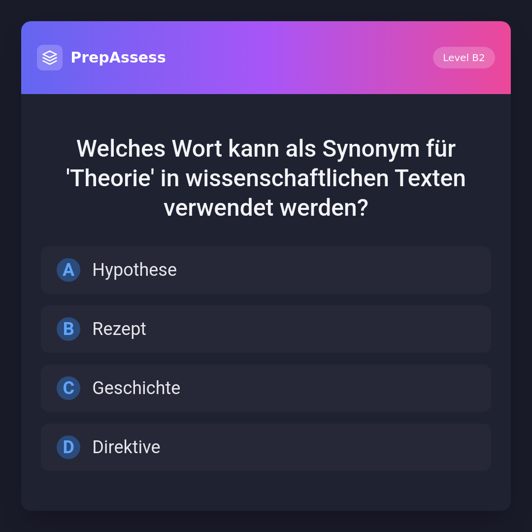 Welches Wort kann als Synonym für 'Theorie' in wissenschaftlichen Texten verwendet werden?