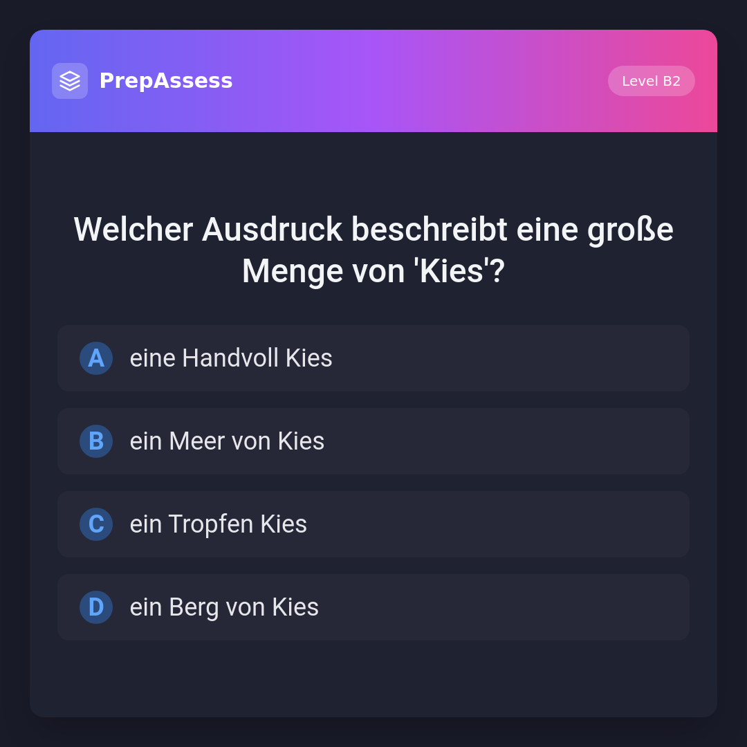 Welcher Ausdruck beschreibt eine große Menge von 'Kies'?