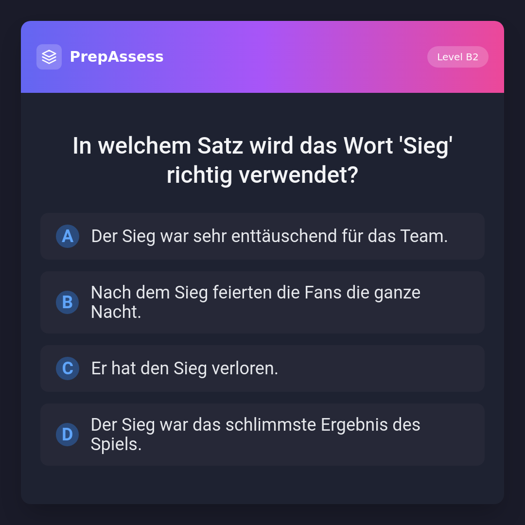 In welchem Satz wird das Wort 'Sieg' richtig verwendet?