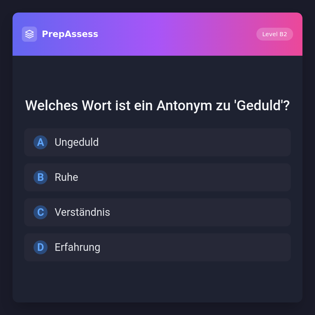 Welches Wort ist ein Antonym zu 'Geduld'?