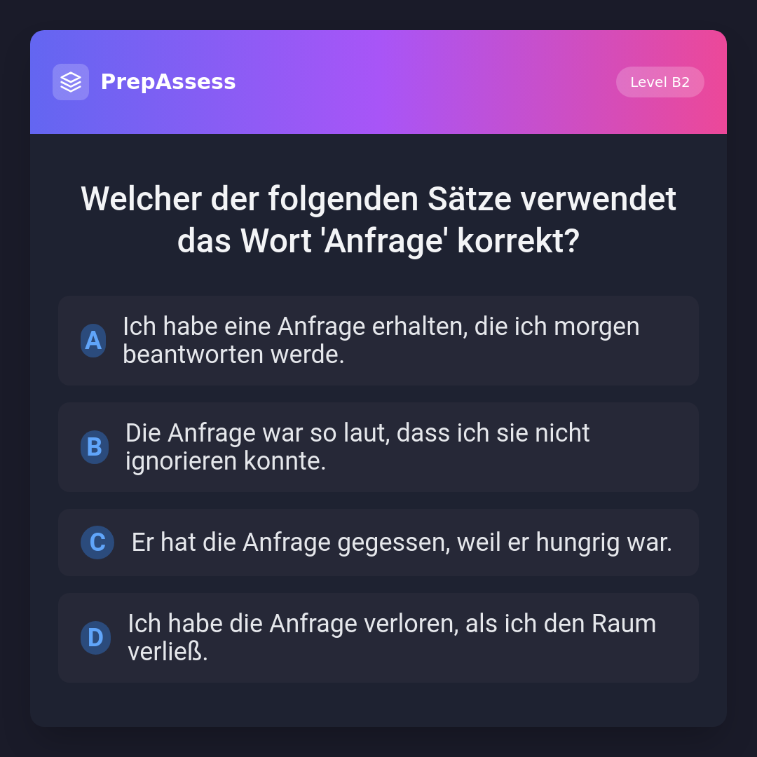 Welcher der folgenden Sätze verwendet das Wort 'Anfrage' korrekt?