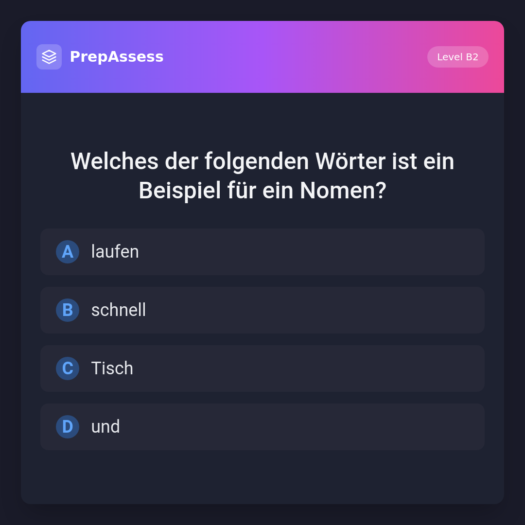 Welches der folgenden Wörter ist ein Beispiel für ein Nomen?
