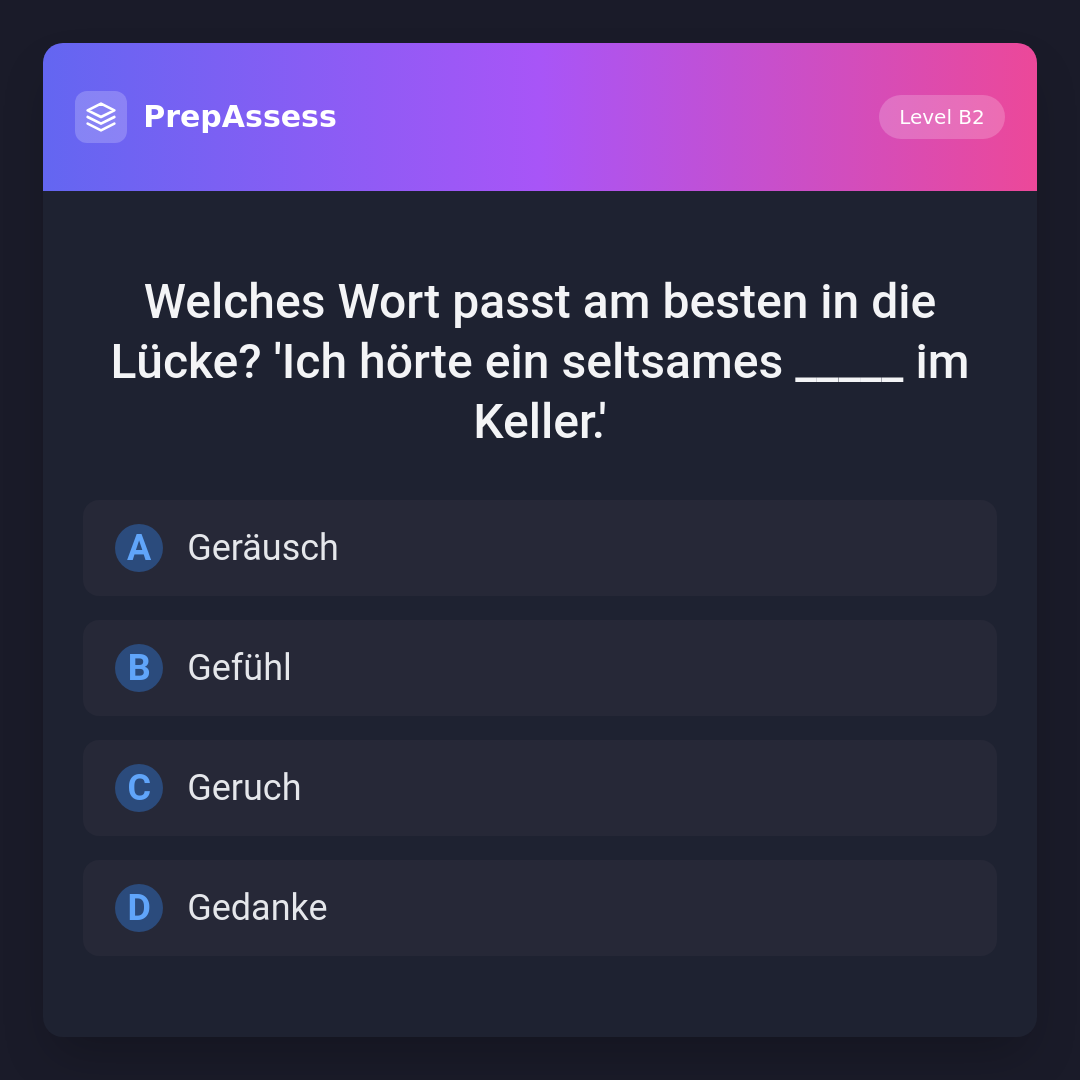 Welches Wort passt am besten in die Lücke? 'Ich hörte ein seltsames _____ im Keller.'