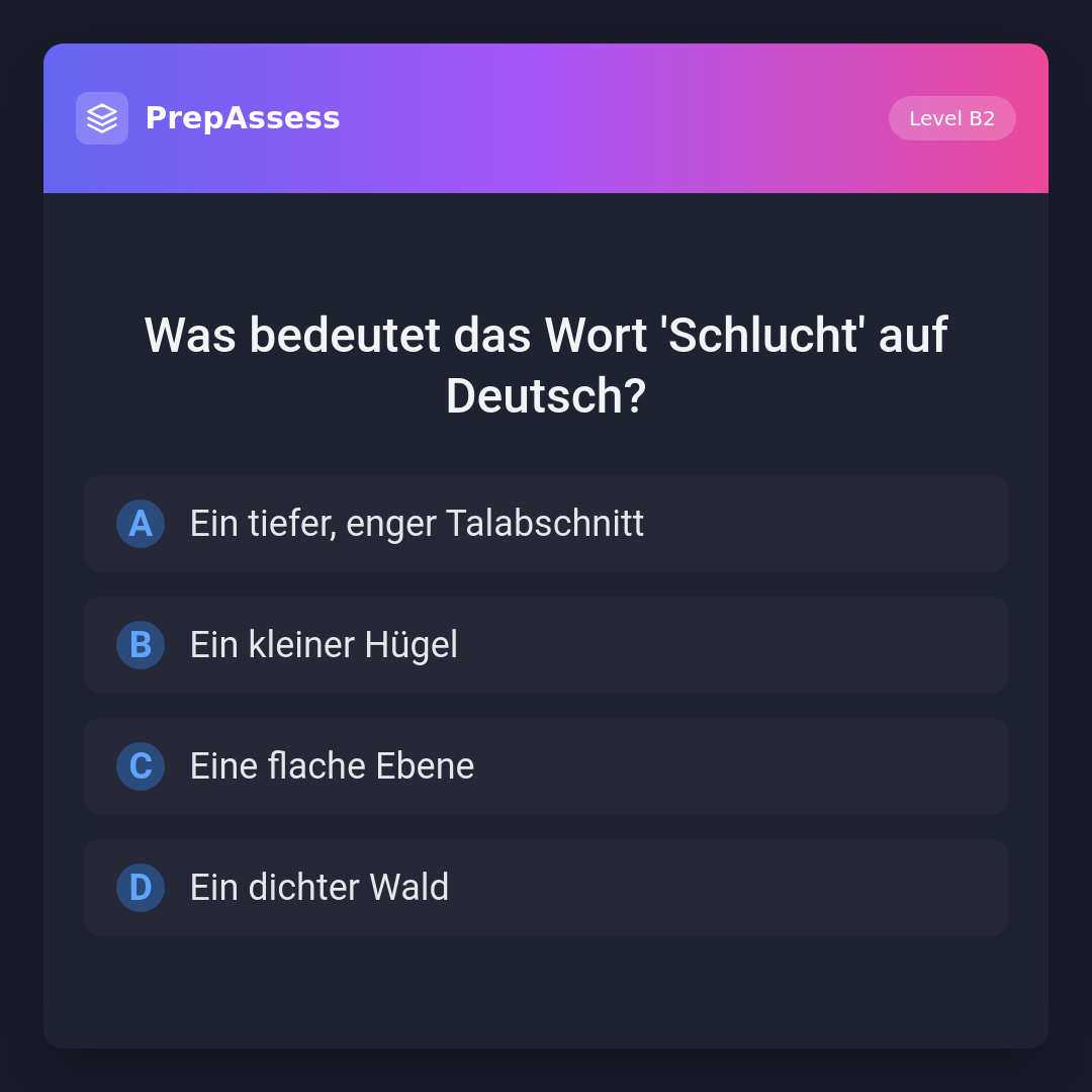 Was bedeutet das Wort 'Schlucht' auf Deutsch?