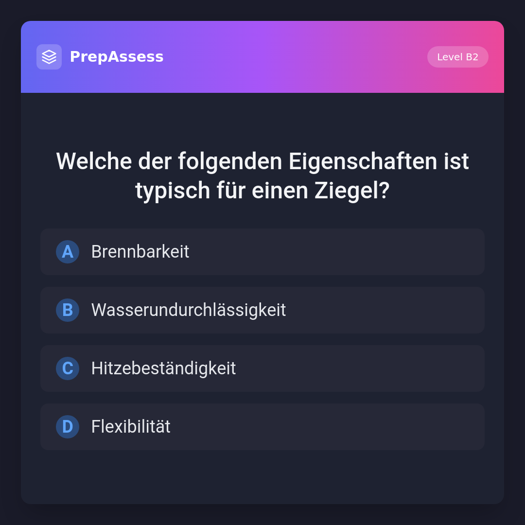 Welche der folgenden Eigenschaften ist typisch für einen Ziegel?