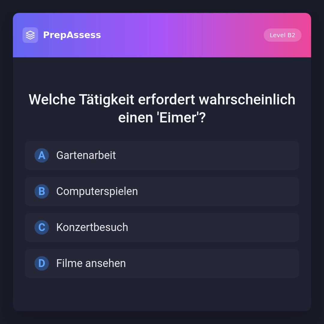 Welche Tätigkeit erfordert wahrscheinlich einen 'Eimer'?