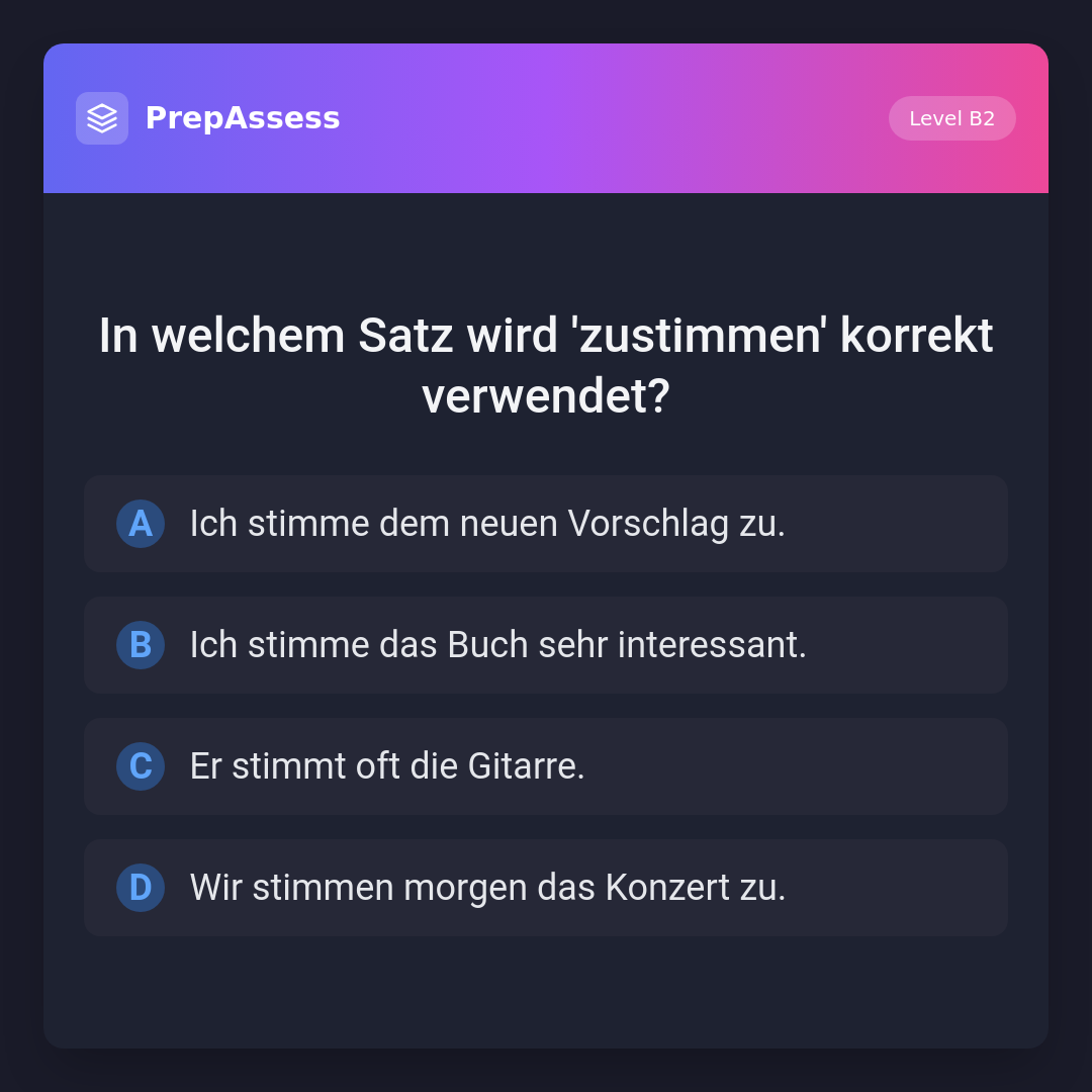 In welchem Satz wird 'zustimmen' korrekt verwendet?