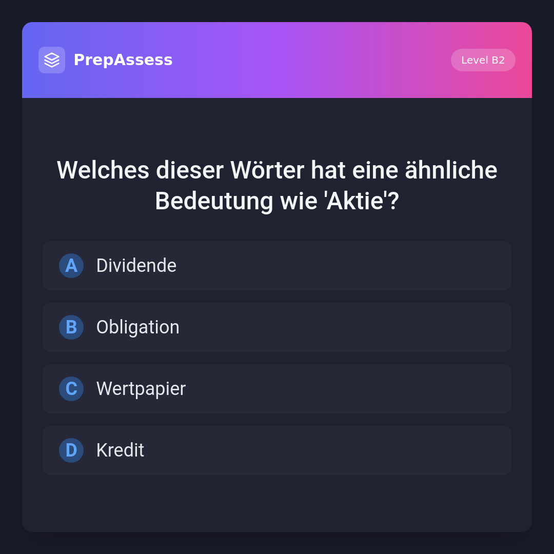 Welches dieser Wörter hat eine ähnliche Bedeutung wie 'Aktie'?