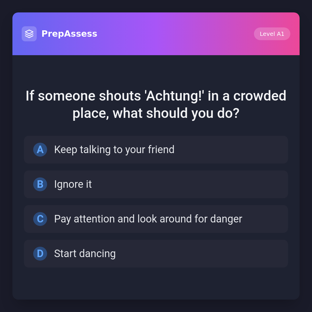 If someone shouts 'Achtung!' in a crowded place, what should you do?