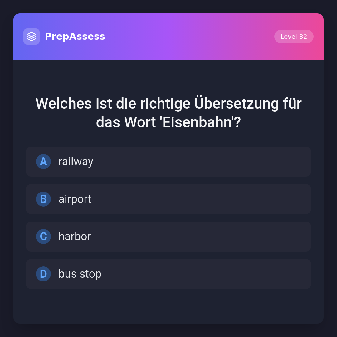 Welches ist die richtige Übersetzung für das Wort 'Eisenbahn'?