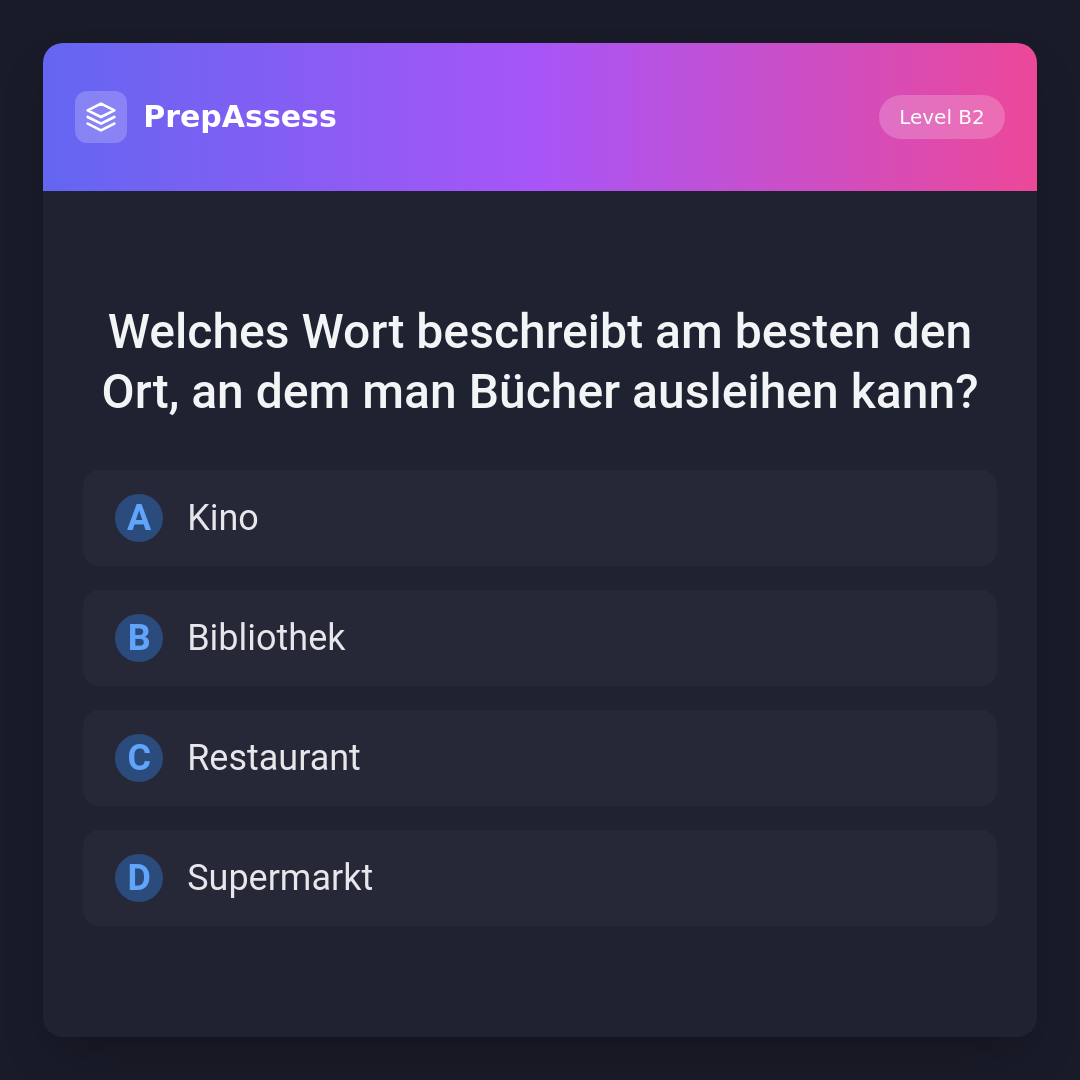 Welches Wort beschreibt am besten den Ort, an dem man Bücher ausleihen kann?