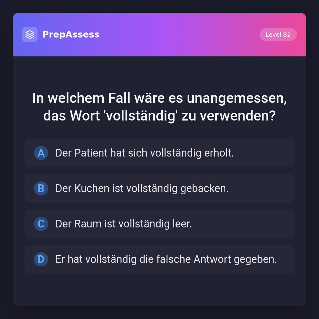 In welchem Fall wäre es unangemessen, das Wort 'vollständig' zu verwenden?