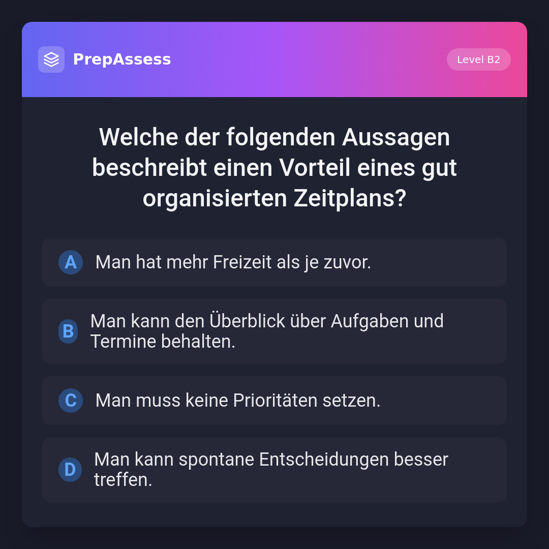 Welche der folgenden Aussagen beschreibt einen Vorteil eines gut organisierten Zeitplans?