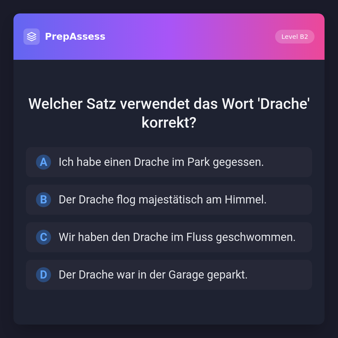 Welcher Satz verwendet das Wort 'Drache' korrekt?