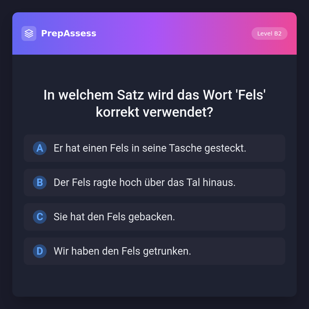 In welchem Satz wird das Wort 'Fels' korrekt verwendet?